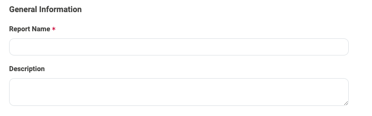 The Report Name is required, and the description is an optional field that will be displayed to help your team understand what the report is for in the future.
