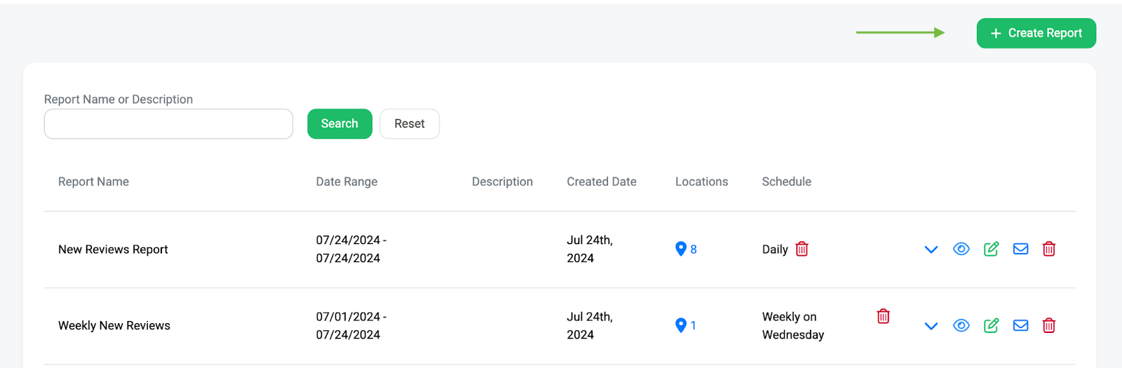 Reports are a powerful tool that can make it easy to keep track of key insights like how many new reviews you are receiving, how many reviews have been removed for your businesses, and many other things.