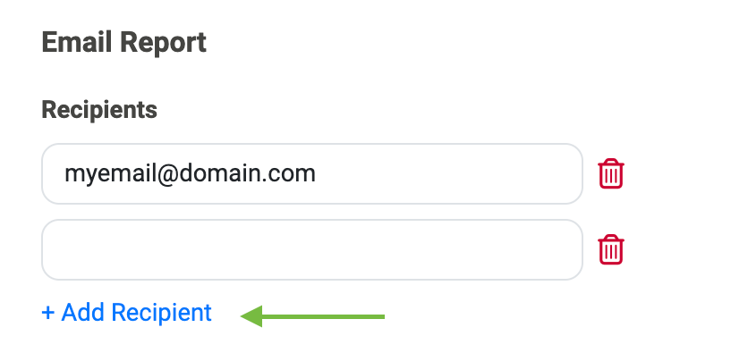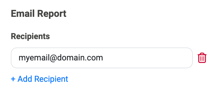 If you would like your report to be sent to specified recipients, include them in the Recipients field: