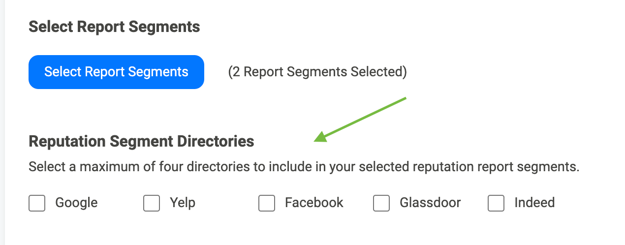 Some of the reputation report segments require you to select which directories to include in the report. If you have selected any of the segments that require this, you will see a section that allows you to select the directories that you want to include data for: